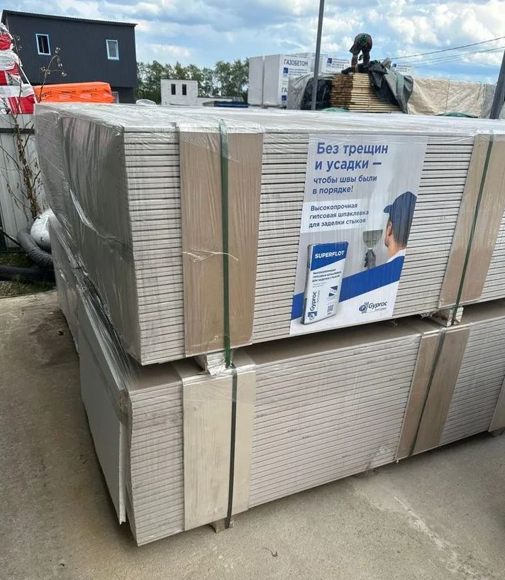 Купил ГВЛ 12.5 мм Knauf для звукоизоляции. Доволен качеством, толщина соответствует заявленной.